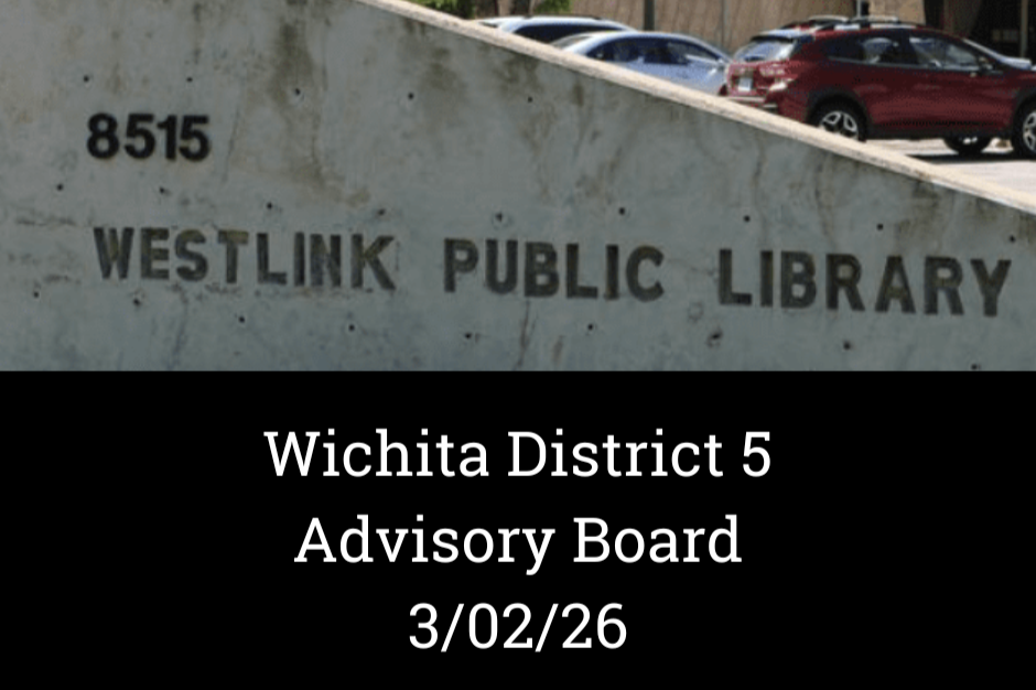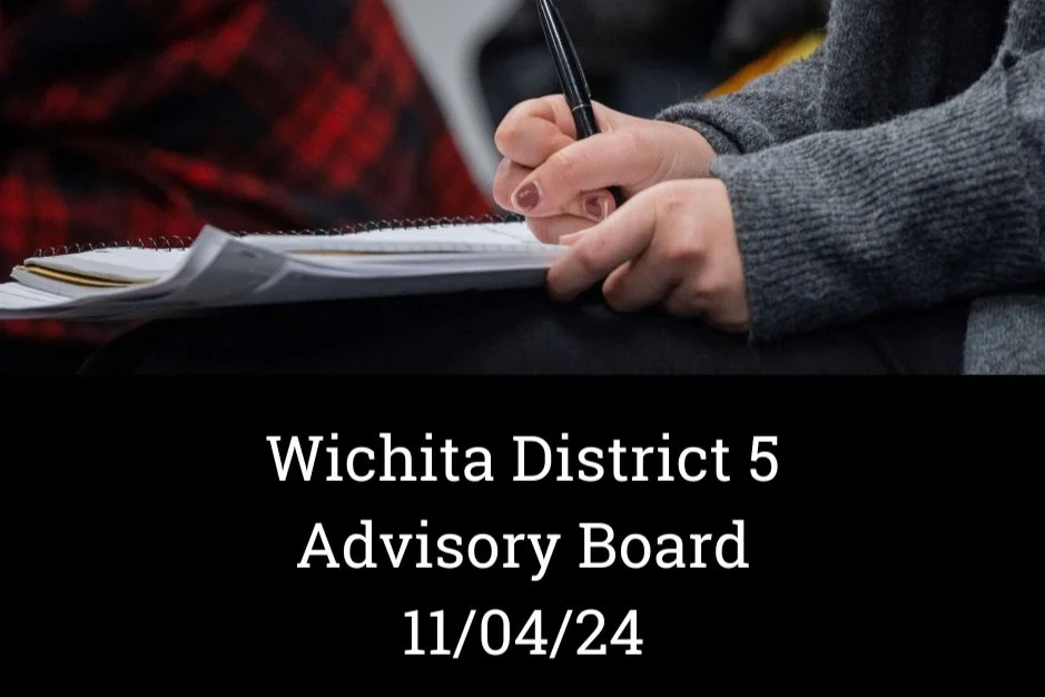 Discussions covered upcoming library events, park activities, and updates on the Wichita Bicycle Plan, which is 95% complete but likely to require an extension. Rezoning for a new office building at 13525 W. 21st Street North was approved.